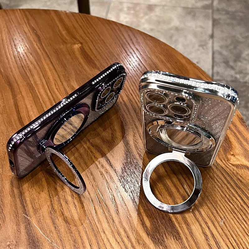 1 * Etui na iPhone'a z brokatem i magnetycznym uchwytem na lusterko(w tym osłona obiektywu*1 + uchwyt na lusterko*1)