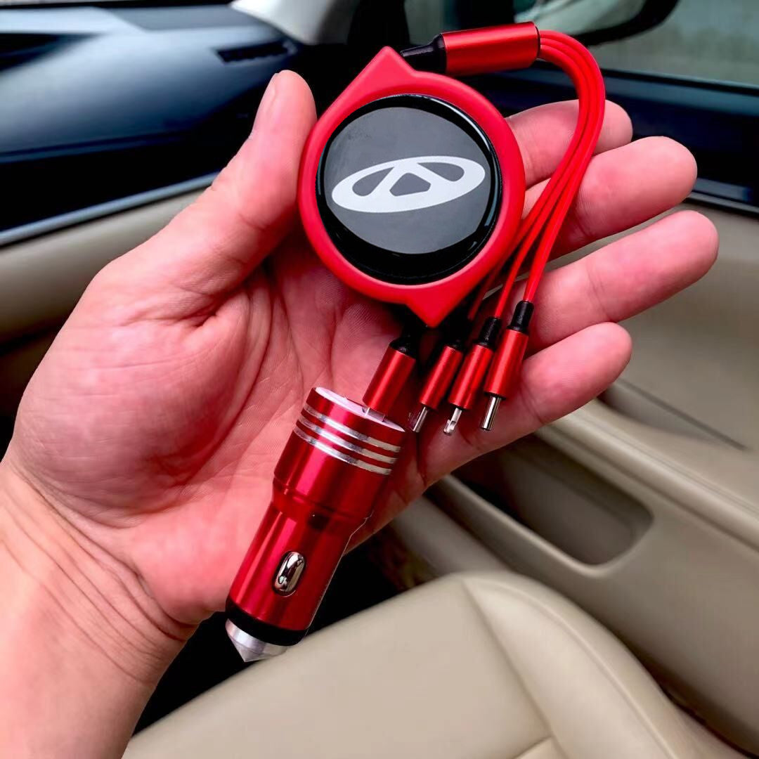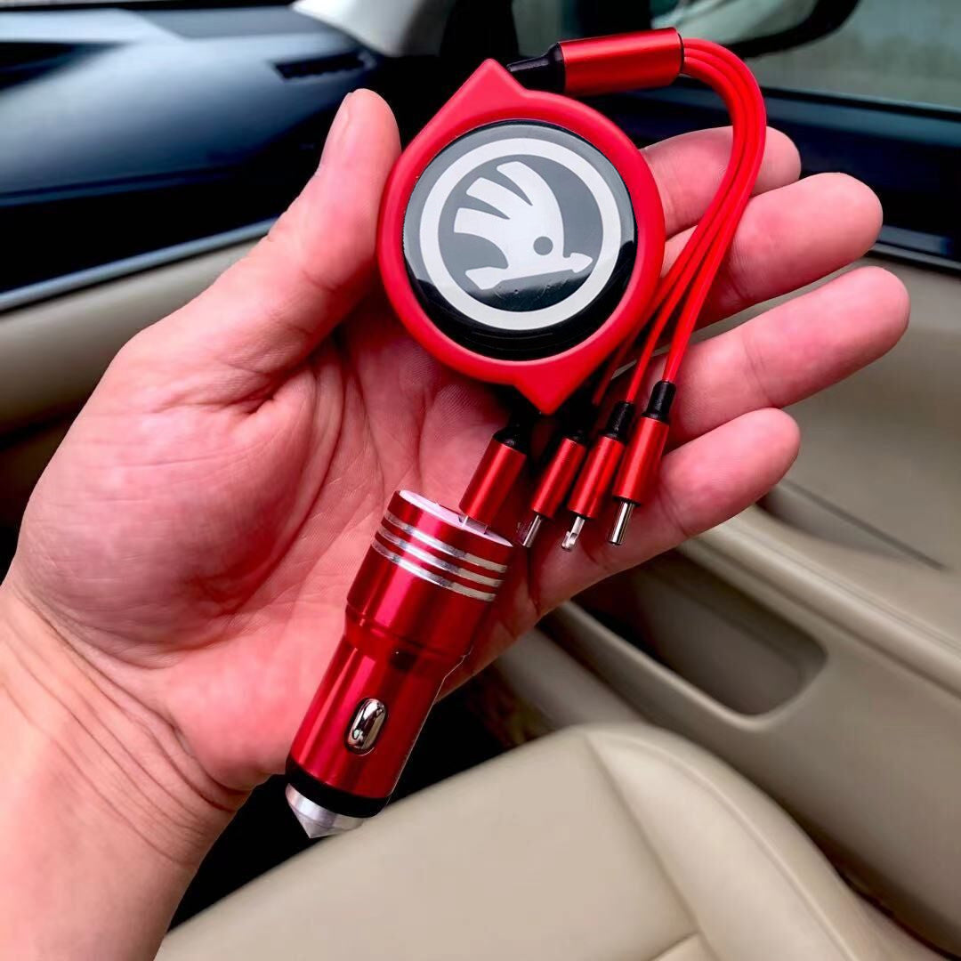 3 w 1 zwijany kabel do transmisji danych w samochodzie + bezpłatna ładowarka samochodowa