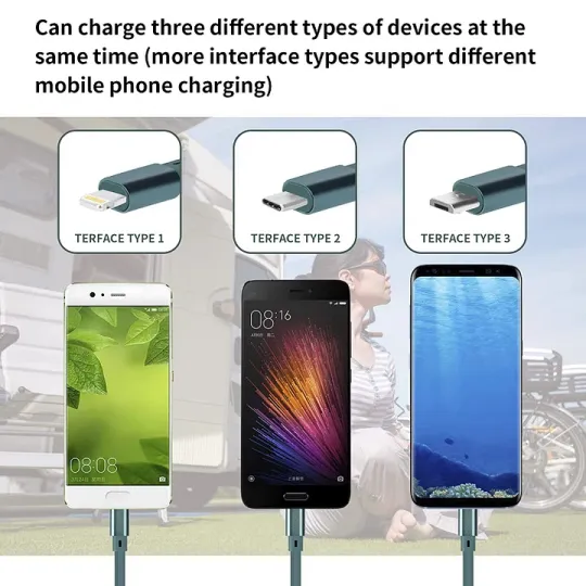 - Wygoda: Idealna długość 1,2 m jest optymalna do użytku w domu, w biurze, w samochodzie, w podróży itp. Zwijany kabel 3 w 1 można bardzo łatwo złożyć i schować w torebce, torbie na laptopa, kieszeni itp.