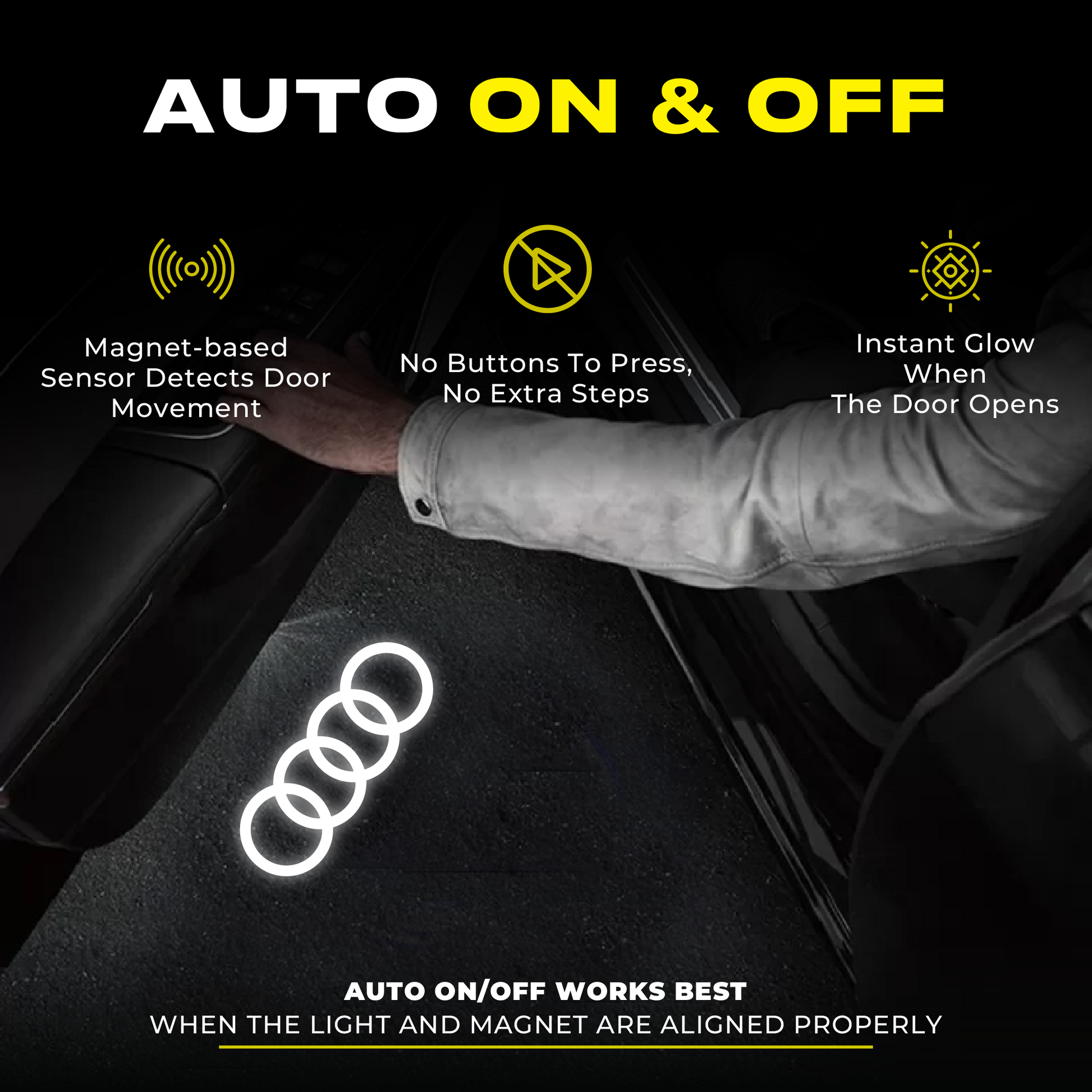 SAMOCHÓD Z NAJCIEPSZYM POWITANIEM: Najgorętszy dodatek samochodowy na rynku. Światła powitalne w drzwiach wyświetlają logo samochodu zaraz po otwarciu drzwi. Przyjemne i przyjazne wejście odzwierciedla Twoją tożsamość jako właściciela samochodu. Pozwól, aby Twój samochód Cię powitał!