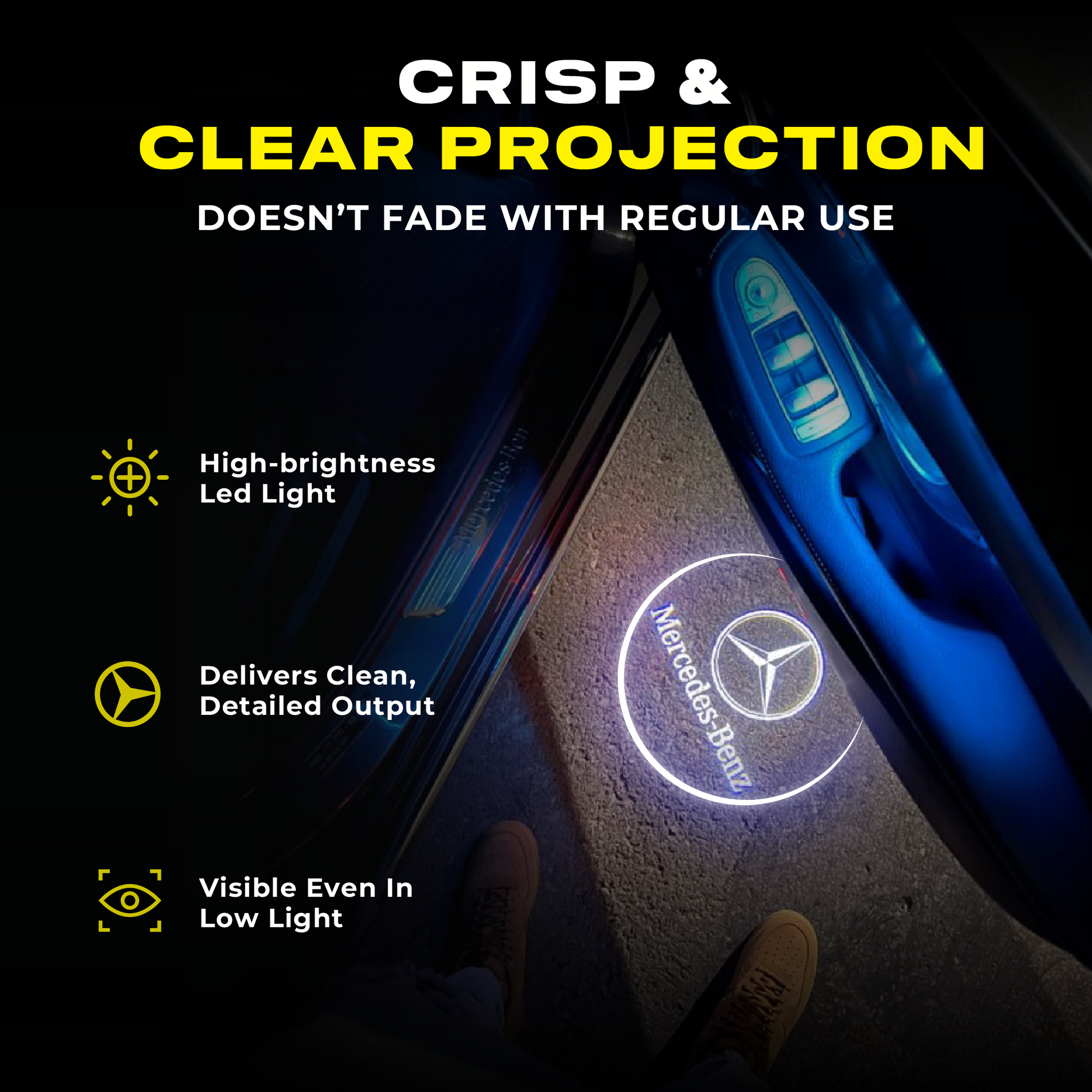 SUPERMOCNA PROJEKCJA: Jego jasny chip LED i soczewka projekcyjna wyświetlają fajne i wyraziste loga samochodów na ziemi, gdy otwierasz drzwi. Co powiesz na odrobinę jasności na ziemi?