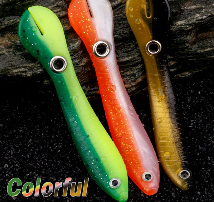 🐟 Multipie Purpose ▶ Miękka plastikowa przynęta może imitować wiele naturalnie wyglądających ruchów, a ryby każdej wielkości będą na nią atakować. Te miękkie przynęty są świetne do połowu basów, pstrągów, ryb panfish, crappie, skorpeny, makreli, bassów małogębowych i paskowanych.