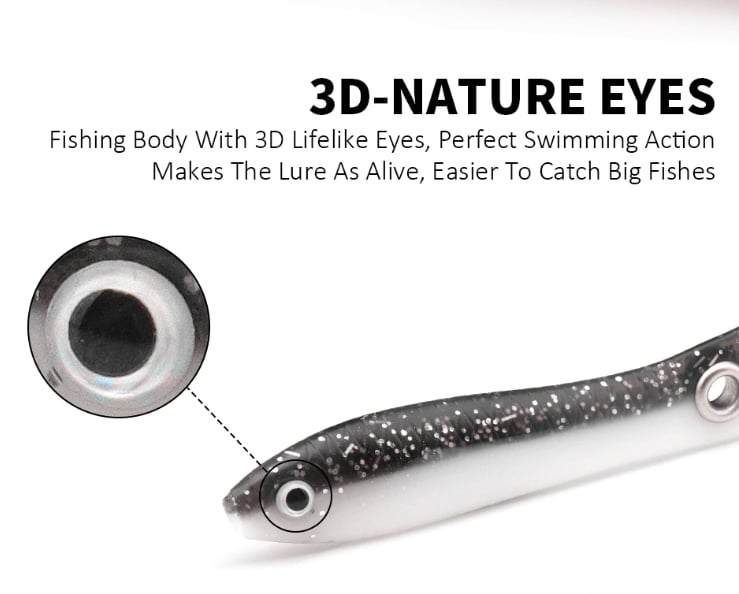 🐟 Specyfikacja ▶ Miękkie i realistyczne przynęty wykonane z wysokiej jakości miękkiego plastiku. Bardzo dobrze wykonana przynęta pod względem trwałości i elastyczności, nie rozrywa się łatwo.